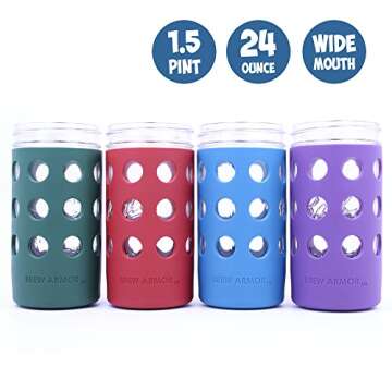 Silicone Mason Jar Protector Sleeve (2 Pack) | Fits Ball, Kerr 24oz (1.5 pint) Wide-Mouth Jars | Thickest Silicone Sleeve | Microwave & Dishwasher Safe | For Coffee, Tea and Smoothies (Green)