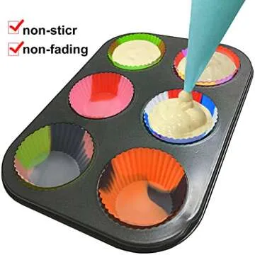 Silicone Rainbow Combo Cupcake Liners with Pastry Bag, Reusable & Non-stick Baking Cups, Standard Muffin Cups Chocolate Holders Truffle Cups (12PCS,6 Colors)