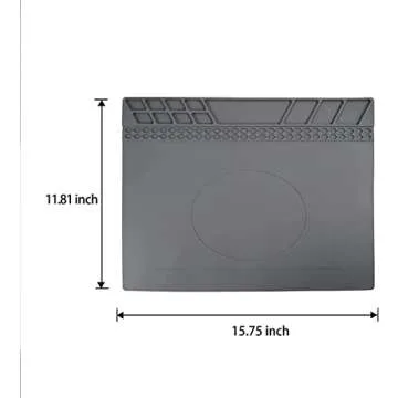 Show moreIntroducing the durable Silicone Repair Mat Heat Resistant 932°F Soldering Work Mat, an indispensable tool for anyone embarking on electronics repair projects. Measure your work as you go with a built-in scale ruler and conveniently store tiny components in any of the 68 compartments designed to keep your IC chips and screws organized. With an ample size of 15.9" x 12", this matte is perfect for working on smartphones, laptops, cameras, smart toys, and more. Crafted from high-quality silicone, this mat promises flexibility, durability, and ease of maintenance with simple cleaning options—just use soap and water or rubbing alcohol.
