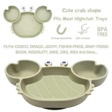 Show more Introducing the Silicone Suction Plate for Toddlers, your ultimate mealtime companion! Designed to make self-feeding easier for little ones, this vibrant green plate features a strong suction base that securely adheres to most highchair trays, ensuring meal time stays mess-free and enjoyable. Made from 100% food grade silicone, it's completely safe for babies and toddlers—free from PPA, BPA, and PVC. The fun colors and cute design not only attract your child's interest but also make eating a delightful experience. Perfectly sized for tiny hands, our included fork and spoon have ergonomic, shortened handles that are designed to promote independence in little eaters while giving parents peace of mind.