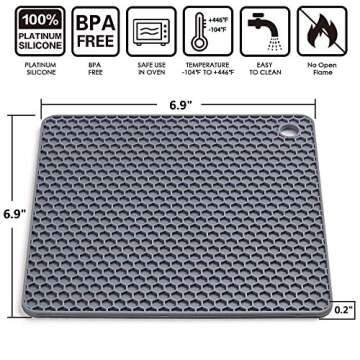 Show moreExperience kitchen versatility like never before with our Silicone Trivet Mats Hot Potholders. These beautifully designed, high-performance mats are your ultimate solution for protecting tabletops and countertops from hot dishes, jars, and even as handy coasters. Made from 100% food-grade, BPA-free silicone, they can withstand temperatures from -104℉ to 446℉ (-40℃ to 230℃), ensuring they are safe to use in the oven, freezer, microwave, and dishwasher. Perfect for any culinary challenge, their honeycomb texture not only looks great but also serves a functional purpose – they are anti-slip, providing excellent grip whether gripping a hot pot or stabilizing a shaky surface.