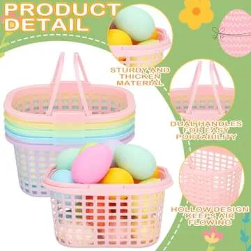 SiliFine 60 Pcs Pastel Plastic Easter Baskets Bulk Small Colorful Plastic Baskets with Handles Easter Gift Wrap Basket for Easter Party Egg Hunts Easter Eggs Party Favor