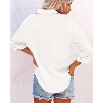 Available in several colors, including a hot pink option perfect for summer, this shirt meets various matching needs with shorts, jeans, pants, or leggings. Plus, with its practical pocket detail and button-down closure, it's not only stylish but also functional. The breathable fabric ensures that you stay comfortable throughout the day, whether at the office, out on the town, or just lounging at home.