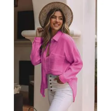 With its versatile nature, this shirt can easily transition from casual outings to more formal settings. The practical button-down front, complemented by a handy pocket, makes it an ideal shirt for any occasion, be it work or play. The hot pink hue adds a touch of color to your ensemble, ensuring you stand out effortlessly.