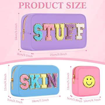 Silkfly 3 Pcs Preppy Makeup Bag Chenille Letter Nylon Cosmetic Bags Organizer
