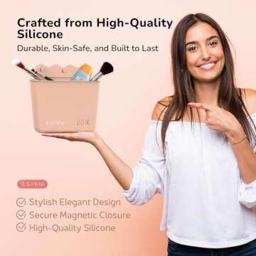 SILKLE Silicone Makeup Bag - Versatile Makeup Organizer with Magnets and Wavy Design, Travel Toiletry Bag and Makeup Brush Holder - Compact and Stylish Cosmetic Bag for Daily Use - Khaki