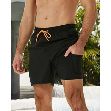 SILKWORLD Mens Swimming Trunks with Compression Liner 2 in 1 Quick-Dry Swim Shorts with Zipper Pockets Black
