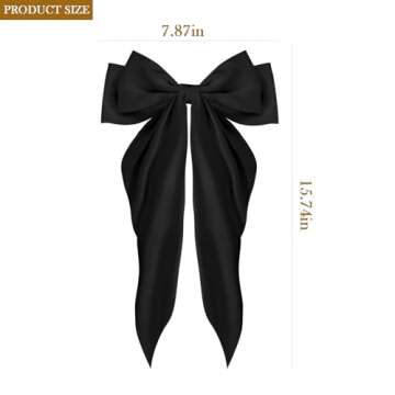 Silky Satin Oversized Hair Bows and Ribbons, 3Pcs Long Tail Bowknot Barrettes Clips for Women Girls
