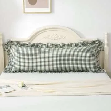 Silnuo Green/White Plaid Ruffled Body Pillow Sham Washed Cotton Shabby Checkered Gingham Pillow Cover 20"x54"