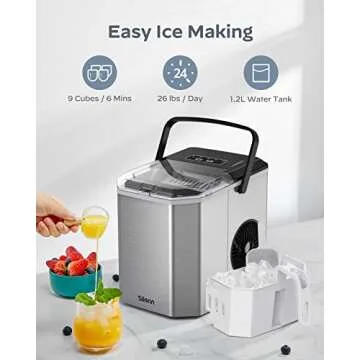 Whether you’re a busy professional or a devoted entertainer, the Silonn Ice Maker is designed to cater to your lifestyle. It simplifies your social gatherings with timely ice production, ensuring you and your guests enjoy chilled refreshments without the wait. Ideal for both the home and office settings, this ice maker brings versatility and functionality together seamlessly.