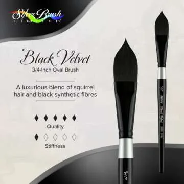 Silver Brush Limited 3009S-3/4 Black Velvet Oval Wash Paintbrush for Watercolor, Gouache, Inks, & Dyes, Size 3/4 Inch, Short Handle