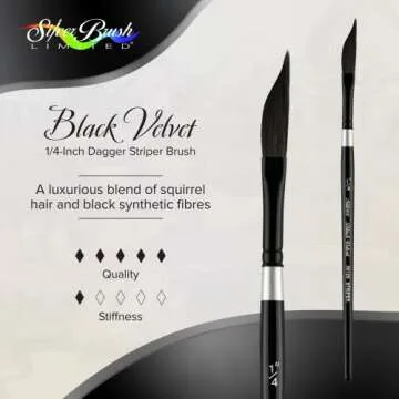 Silver Brush Limited 3012S-1/4 Black Velvet Dagger Striper Paintbrush for Watercolor, Gouache, Inks, & Dyes, Size 1/4 Inch, Short Handle