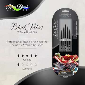 Introducing the Silver Brush Limited WC-3207s Black Velvet Must-Have Rounds Set, a premium collection designed specifically for watercolor artists and skilled hobbyists alike. This prestigious set of 7 meticulously crafted brushes features varying sizes from 0 to 12, ensuring you have the perfect tool for every application, whether crafting delicate fine details, smooth washes, or intricate scrollwork. Each brush combines a luxurious blend of soft squirrel hair and durable black synthetic...