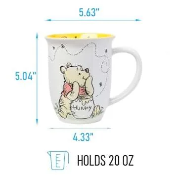 Silver Buffalo Disney Winnie the Pooh But First Hunny Wide Rim Bees Flying Ceramic Mug, 16 Ounces