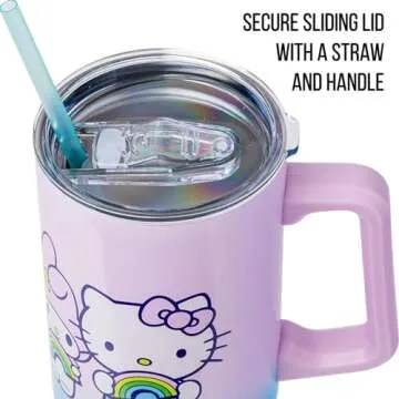 Silver Buffalo Sanrio Hello Kitty and Friends Featuring My Melody, Kuromi, and Pompompurin Rainbow Ombre Stainless Steel Tumbler with Handle and Straw, Fits in Standard Cup Holder, 40 Ounces