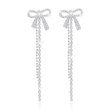 Unlike other earrings on the market that might compromise on quality, our Silver Bow Dangle Earrings seamlessly blend style and elegance. With their unique bow design and high-quality rhinestones, they stand out, proving more versatile than standard stud earrings. Competitors often offer limited designs, but our variety ensures you can match your earrings to any outfit or occasion.