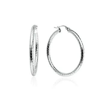 Exquisite 35mm Silver Hoop Earrings - Diamond-cut Sterling Silver Fashion