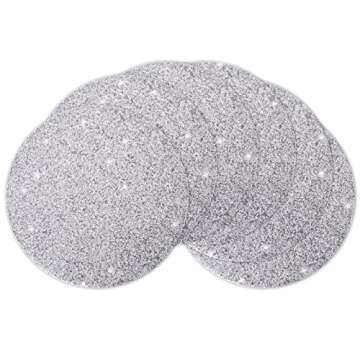 Silver Set of 6 Round Placemats Coasters Set Washable Heat Resistant Non-Slip Table Mats for Kitchen Dining Table Wedding Banquets Sparkle Decoration Rhinestones Placemats (15 Inches)
