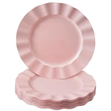 Show moreIntroducing the SILVER SPOONS Elegant Plastic Plates, the perfect blend of elegance and functionality for all your special occasions. Crafted from premium high-grade heavyweight plastic, these dinner plates are not just beautiful—they're also non-toxic and safe for serving a variety of dishes, whether hot, wet, or cold. With a stunning scalloped rim design, these pink plates are ideal for elevating table settings at wedding receptions, baby showers, and other festive gatherings.