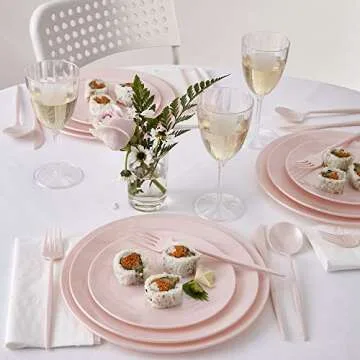 SILVER SPOONS Sleek Design Disposable Flatware Set for Baby Shower (96 PC) Plastic Silverware Set for 24-24 Plastic Spoons, 24 Knives, 48 Forks - Heavy Duty Disposable Cutlery Set Collection - Blush