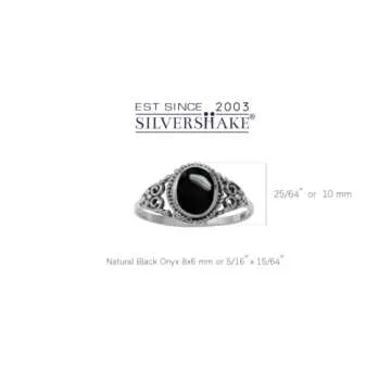 Silvershake Created Black Onyx Inlay 925 Sterling Silver Filigree Victorian Style Ring Size 6.5