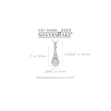 Show moreDiscover the beauty of our Silvershake Natural Moonstone 925 Sterling Silver Triquetra Celtic Knot Pendant, a stunning necklace that seamlessly combines elegance with meaningful symbolism. Crafted from high-quality 925 sterling silver, this necklace features a mesmerizing Moonstone gemstone, cut ‘En Cabochon’ to showcase its unique blue shimmer, captivating anyone who gazes upon it. The intricate design of the Celtic Triquetra pendant not only adds depth and charm but also reflects ancient traditions, representing affection, trust, and loyalty—a perfect accessory for today’s modern woman.