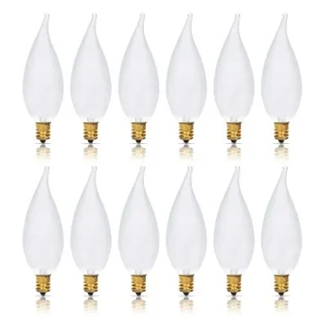 Show moreIlluminate your space with elegance using the Simba Lighting Candelabra Flame Tip Frosted CA10 light bulbs. This 12-pack of decorative incandescent bulbs not only enhances your existing fixtures but also transforms the atmosphere of any room. Designed with a stunning flame tip that mimics the flicker of real candles, these bulbs provide a 2700K Warm White glow, creating a cozy and inviting environment perfect for both relaxation and entertaining. Whether it’s for your chandelier in the dining room or for accentuating wall sconces, these bulbs are crafted to impress.
