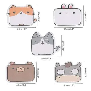 Simfree 5 Pack Cute Sticky Notes - Cartoon Animal Patterns for Fun Note Taking