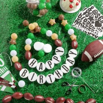 Simgoing 98 Pcs Football Banner Decor Jumbo DIY Friendship Bracelet Birthday Banner Kit Customizable Party Giant Garland Decoration for Football Themed Birthday Game Fans(Green,White, Khaki,Brown)