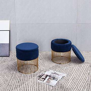 When placed alongside similar products in the market, the Simhoo Velvet Upholstered Round Vanity Stool stands out due to its superior craftsmanship and thoughtful features. Many competitors offer basic stools without storage or are crafted from lower quality materials. This stool's velvet upholstery not only feels luxuriously soft but also adds a pop of color that can elevate any room. The combination of a solid metal frame and hidden storage simply can't be found in most stools, making this piece a wise investment for anyone who values both aesthetics and utility.