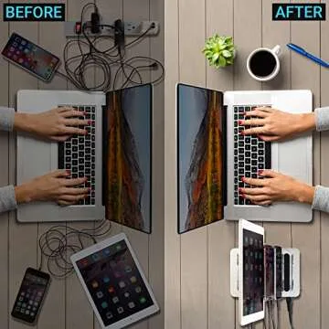 Simicore Charging Station for Multiple Devices, Certified 6 USB 50W 10A Fast Charging Dock, Non-Slip Surface, Smart Phones, Tablets, Watch, Other Electronics Organizer