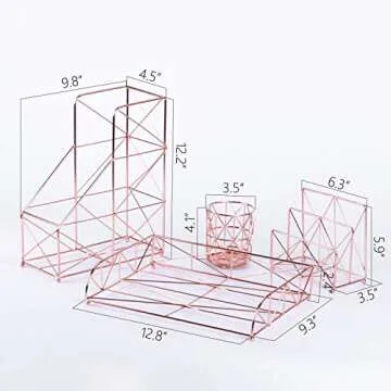 This organizer set boasts a contemporary rose gold finish, perfect for adding a touch of elegance to any home, school, or office environment. Its stylish wire design is not only eye-catching but also functional, making it a versatile addition to your workspace.