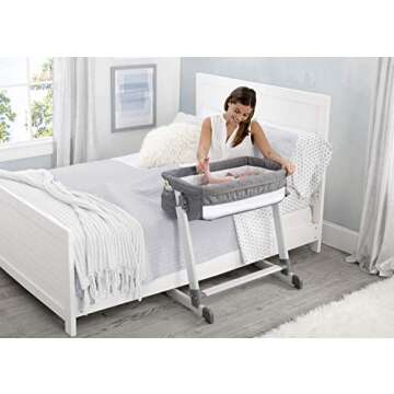 Simmons Kids By The Bed City Sleeper Bassinet - Adjustable Height Portable Crib with Wheels & Airflow Mesh, Grey Tweed