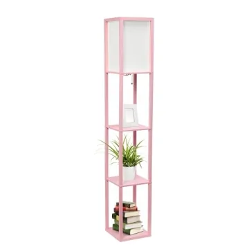 Simple Designs LF1014-LPK Etagere Organizer Storage Shelf Floor Lamp - Light Pink