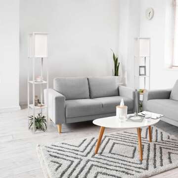 Simple Designs LF1014-WHT Etagere Organizer Storage Shelf Linen Shade Floor Lamp, White