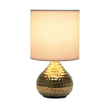 Simple Designs LT2073-GDW Mini Hammered Texture Gold Drip Table Lamp with White Shade