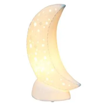 Simple Designs LT3338-WHT Porcelain Fun Shaped Crescent Moon over Clouds Celestial Table Night Light Lamp, Moon