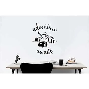 Simple Expressions Arts Camper Outdoor Adventure Awaits Family Love Vinyl Quote Saying Wall Art Lettering Sign Room Decor Inspirational Mural Artwork