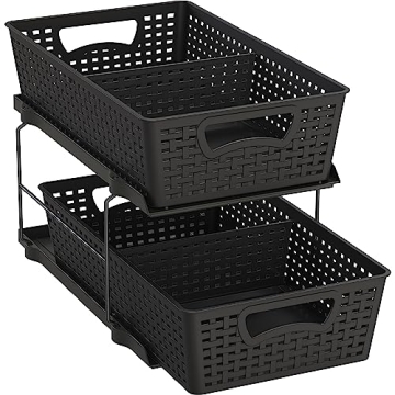 Simple Houseware 2 Tier Bathroom Organizer Tray Pull-Out Sliding Drawer/Under-Sink Storage, Black
