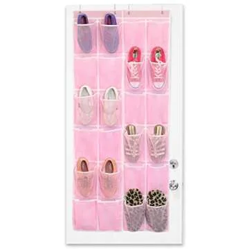 Simple Houseware 24 Pockets - 2PK 12 Large Pockets Over Door Hanging Shoe Organizer, Pink