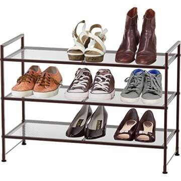 Simple Houseware 3-Tier Stackable Utility Shoes Organizer Rack, Bronze