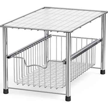 Show moreIntroducing the Simple Houseware Chrome Metal Stackable Storage Rack, a beautifully designed organizational solution that effortlessly maximizes your limited kitchen space. Measuring 16.75 inches long, 10.8 inches wide, and 10.25 inches high, this rack is ideal for those tricky spots under the sink or in the pantry. Featuring a sleek chrome finish, it adds a touch of elegance while remaining robust enough to withstand daily use. Whether you need to store cleaning supplies, batteries, or any miscellaneous kitchen items, this stackable storage unit is versatile, allowing for tailored configurations that suit your specific needs. Its sliding basket design provides easy access to all your stored goods, making your kitchen organization seamless and stress-free.