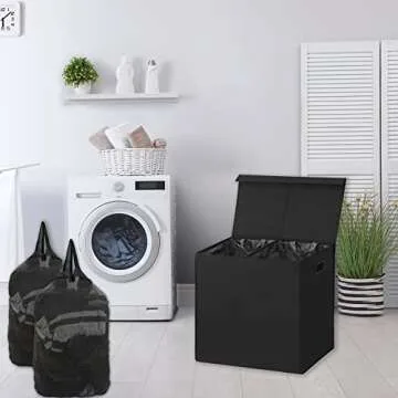 Simple Houseware Double Laundry Hamper with Lid and Removable Bags, Black
