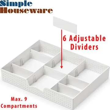 Transform your drawer chaos into organized bliss with the Simple Houseware Drawer Organizer Tray. Crafted with a sleek, minimalist design, this stylish white organizer not only enhances the aesthetic of your workspace but also offers exceptional functionality. Its space-saving structure ensures that you can maximize your drawer space without compromising on style. It features an innovative design that requires no tools for assembly, allowing you to set it up in seconds. Featuring six removable...