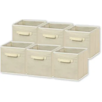 Show moreTransform your cluttered spaces into models of organization with our Simple Houseware Foldable Cloth Storage Cube Basket Bins Organizer in a stylish beige. This 6-pack of collapsible bins is designed to save space when not in use, making them a versatile solution for any room in your home. Each bin is supported by 5 heavy cardboards, including the bottom side, ensuring durability and stability. The lightweight yet sturdy design makes these boxes perfect for organizing everything from baby clothes and toys to books and office supplies. With easy access provided by the fabric drawer handle, these bins compliment any cube storage organizer seamlessly. Measuring 11" H x 10.75" W x 10.75" D, they fit standard cube shelves perfectly.