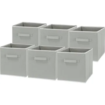 Show moreIntroducing the Simple Houseware Foldable Cube Storage Bin in a chic gray, this 6-pack storage solution is not just about organizing your space, but also elevating your decor. Designed with functionality in mind, each bin measures 11 inches high and 10.75 inches wide, making them perfectly compatible with standard cube shelves. Made from durable cloth material that is sewn onto heavy cardboard, these bins offer the ideal blend of lightweight convenience and sturdiness that accommodates everything from baby clothes and toys to bulky books.