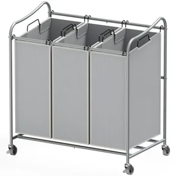 Show moreTransform your laundry day with the Simple Houseware Heavy-Duty 3-Bag Laundry Sorter Cart in a sleek silver finish. Designed for durability and convenience, this laundry sorter features a sturdy steel frame with an extra horizontal bar for added stability, ensuring it can handle your heaviest loads without wobbling. Each of the three heavy-duty grey bags can hold up to 13 gallons of clothes, making sorting laundry by color, fabric type, or family member a breeze. The bags are not only spacious but also easy to clean, ensuring your laundry sorter stays fresh and hygienic. Equipped with heavy-duty casters, two of which include brakes, this cart glides smoothly across floors, making it easy to move from room to room. Whether you're doing laundry in a small apartment or a large house, this cart is designed to make the process more efficient and less of a chore.