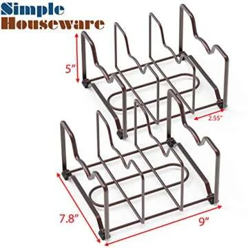 The dimensions of the rack are a practical 9L x 7.8W x 5H inches, making it an ideal fit for various cabinet sizes. Rubber feet protect your surfaces from scratches, ensuring that the rack remains stable while maintaining the integrity of your furniture. This innovative design allows you to maximize cabinet space effectively, giving you peace of mind knowing your valuable cookware is well-organized and easily accessible.