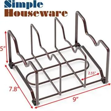 Show moreDiscover the ultimate organizational solution for your kitchen with our versatile rack, designed to hold everything from pot lids to cookie sheets, cutting boards, and bakeware. This beautifully crafted rack is made from sturdy gauge steel and features a sleek silver-painted finish that complements any kitchen decor. With dimensions of 9L x 7.8W x 5H inches (with each compartment width at 2.56 inches), it is perfectly designed to maximize your cabinet space while keeping items easily accessible.