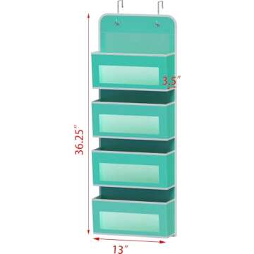 Simple Houseware Over Door/Wall Mount 4 Clear Window Pocket Organizer, Turquoise